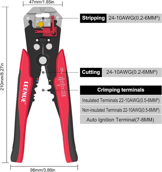 LEENUE Self Adjusting Wire Stripper 3 in 1, Electrical Wire Stripping Cable Cutting Crimping Tool