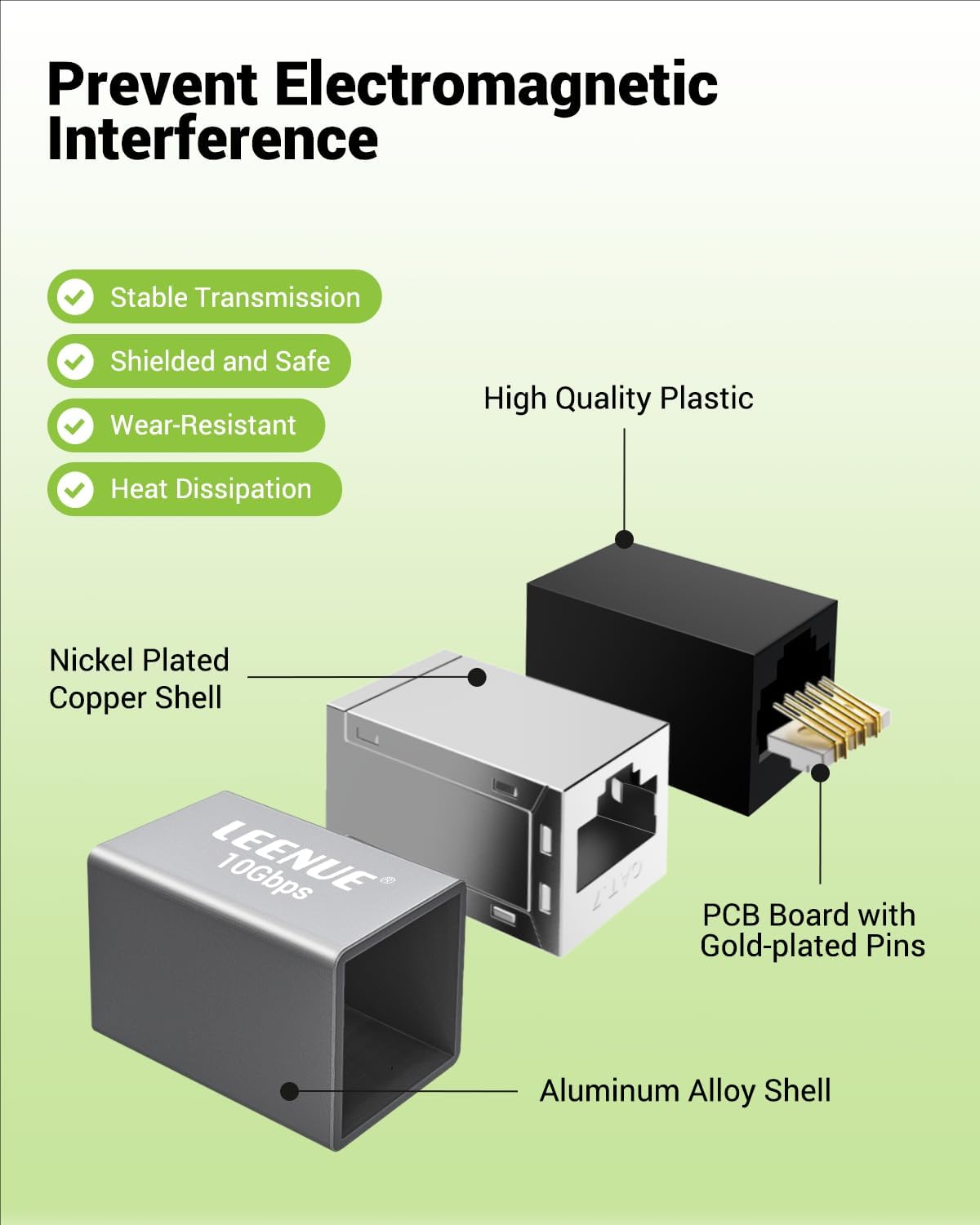 • Aluminum alloy shell reduces electromagnetic interference for lossless transmission