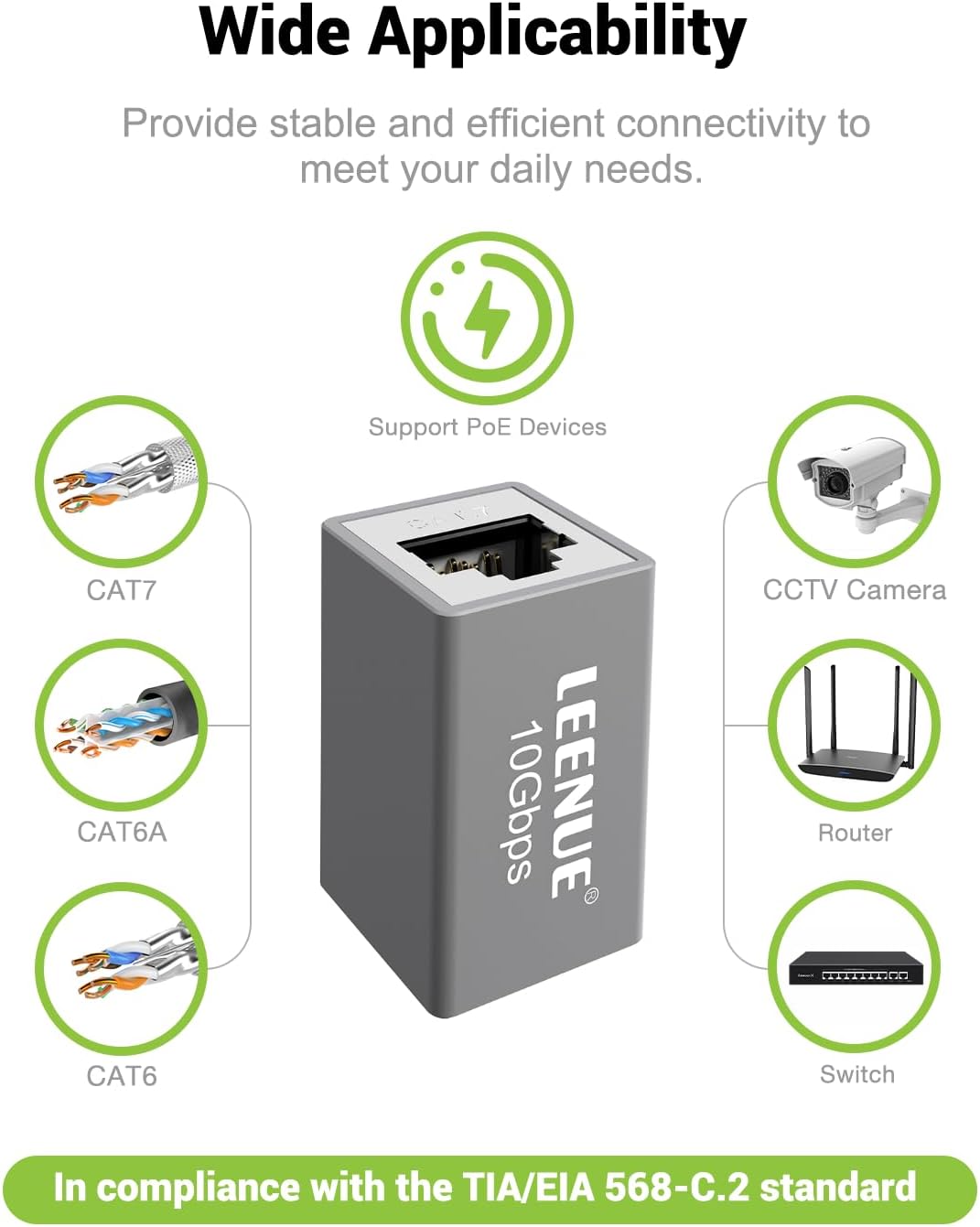 • Complies with ANSI/TIA/EIA 568C standards for stable home or office connectivity