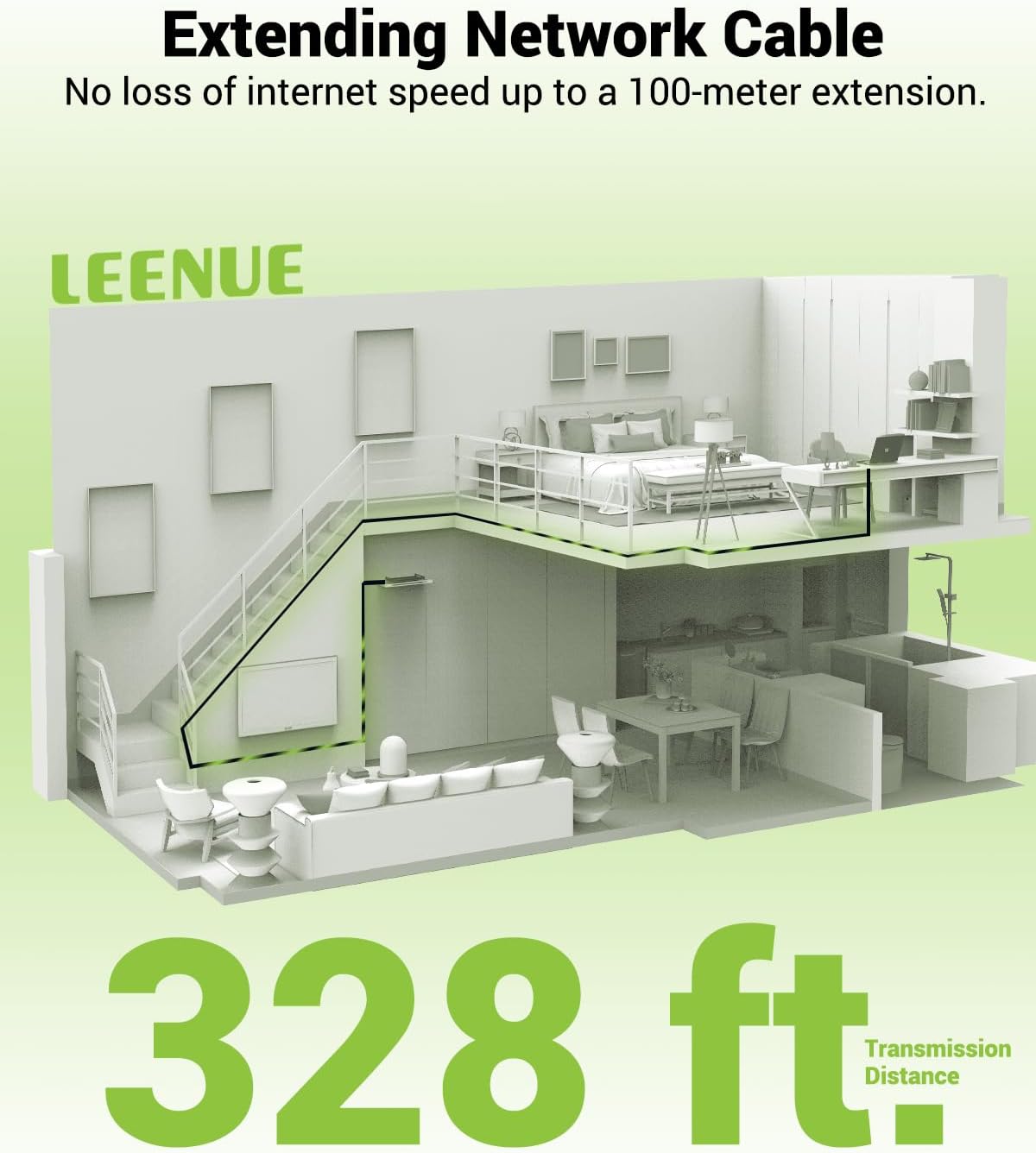• Extends network cabling up to 328 feet (100 m) by joining two Ethernet cables